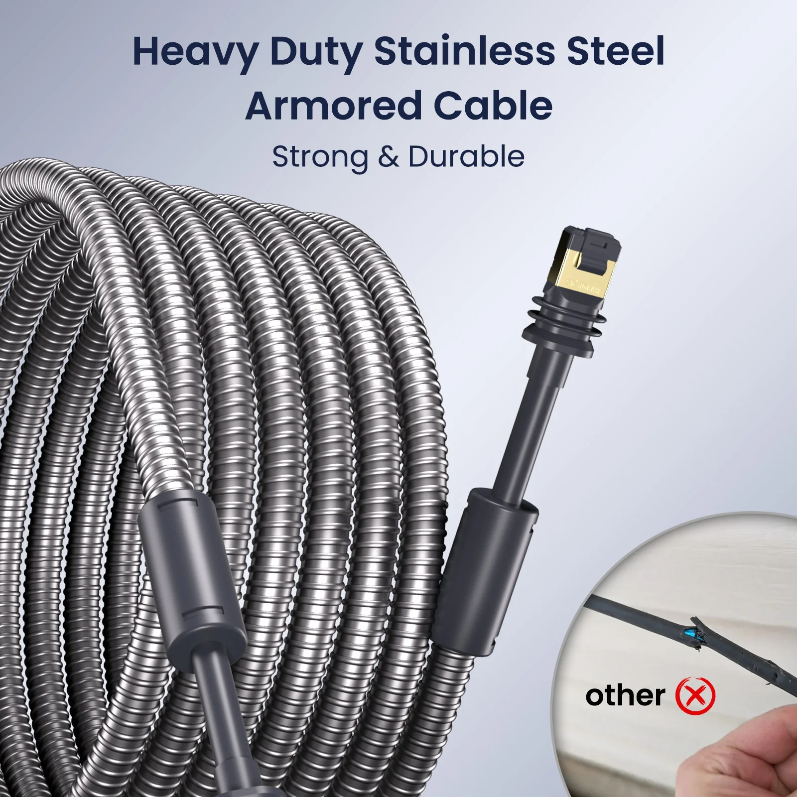 Starlink Cable Gen3, 25M/82FT Heavy Duty Armored Cable for Starlink Standard Gen 3/Mini Stainless Steel Sleeve Outdoor Waterproof Chew Proof