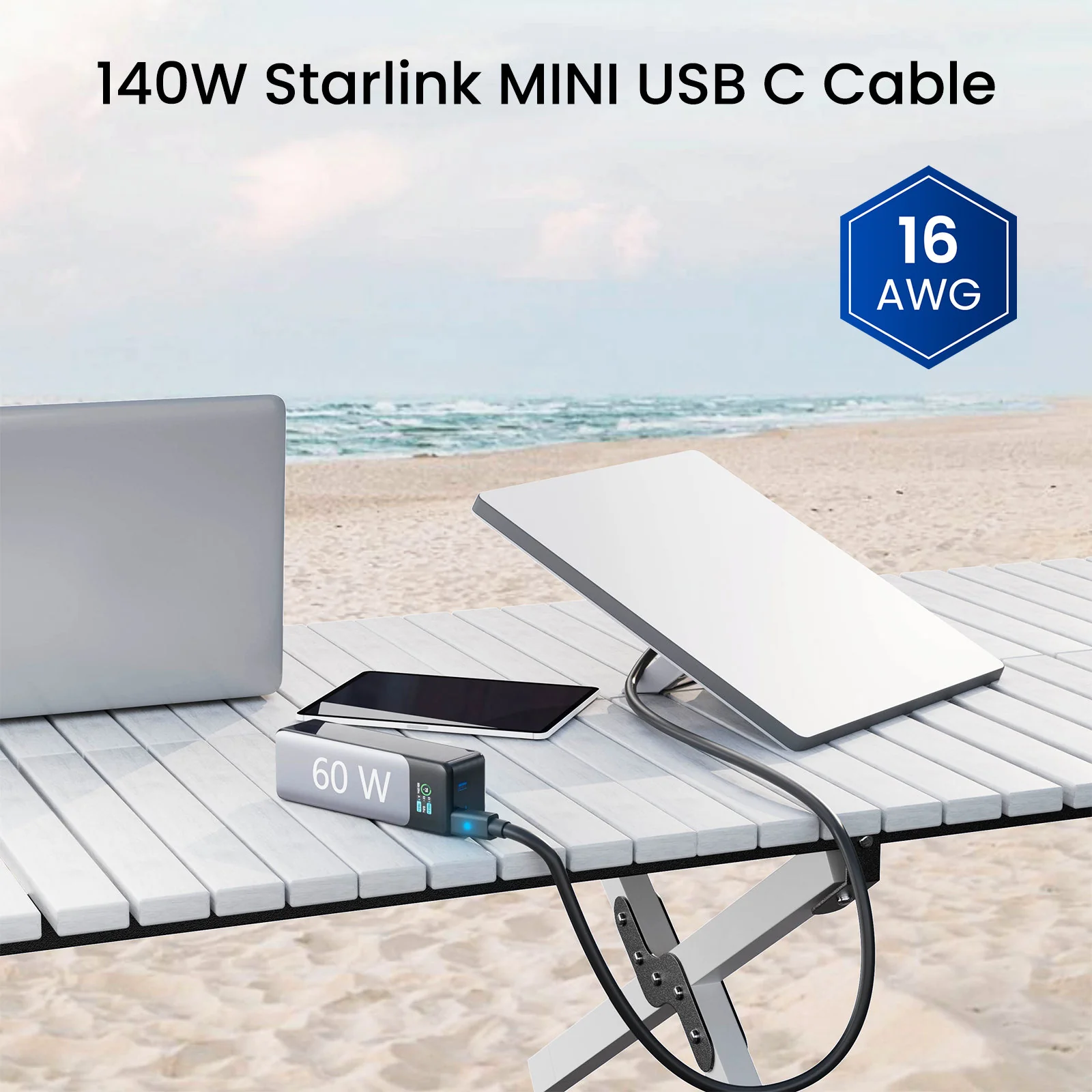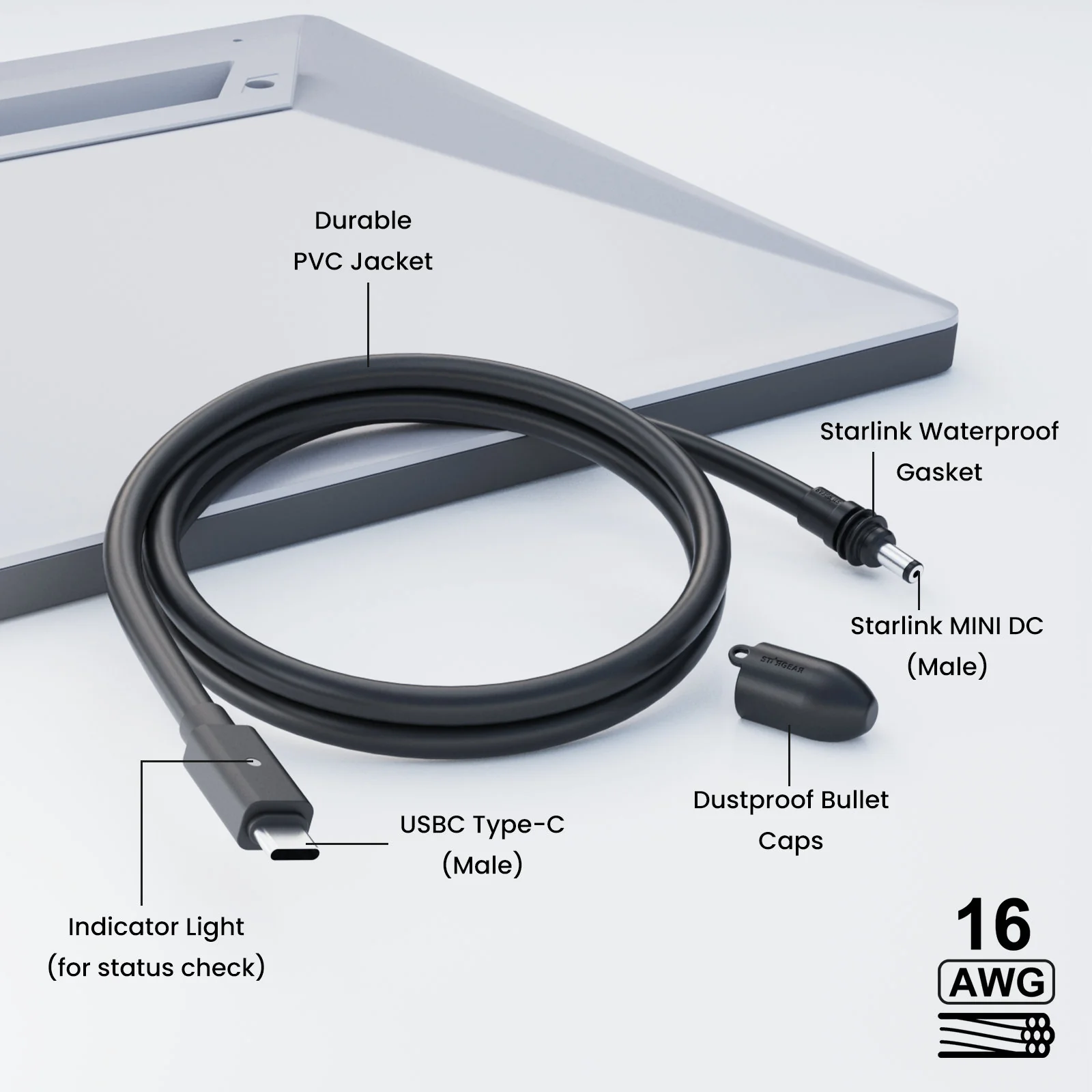 Starlink Mini Cable 6.5FT, 140W USB C to DC Power Cable 16AWG with Indicator Light, Work with 60W+ PD Source, Compatible with 28V PPS and 20V PD Protocols (2M/6.5FT)